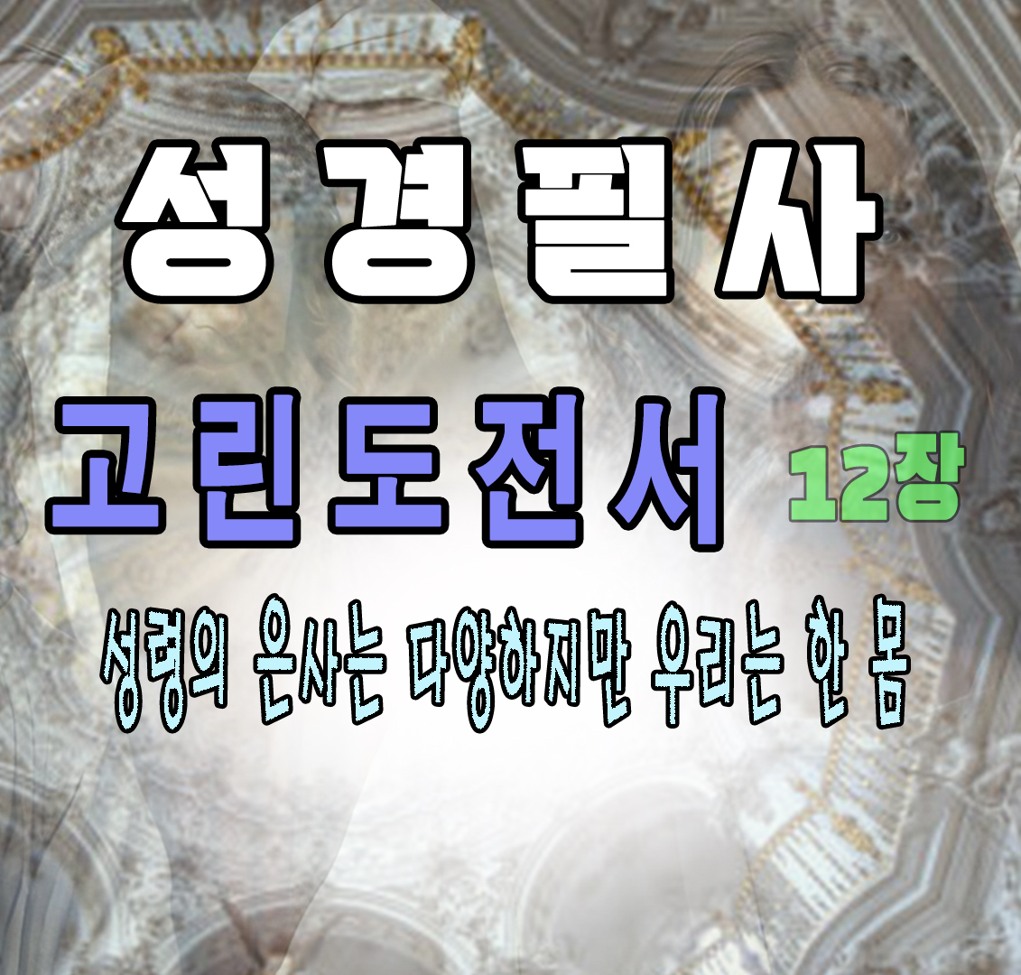 고린도전서 12장은 성령의 은사와 교회의 일체성에 대해 설명하며, 각자의 은사가 다르지만 모두가 그리스도의 한 몸을 이루는 지체임을 강조합니다.